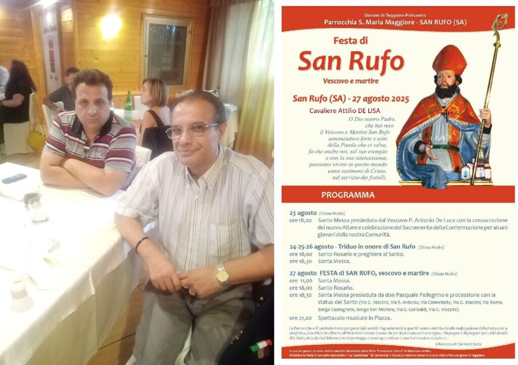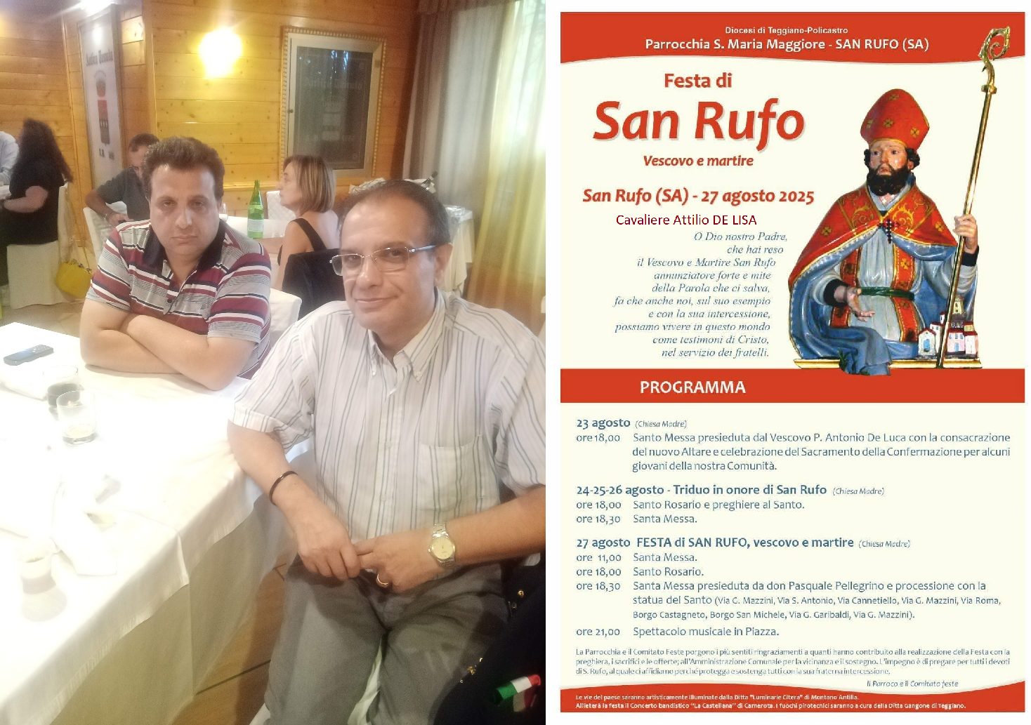 Dal Cavaliere Attilio De Lisa di Sanza che onora il Paese Natale dove vive suo Fratello Fiore di cui espone apertamente un caloroso saluto all’amico Parroco don Nicola Coiro e la stima al Sindaco Michele Marmo con Amministrazione-Giunta-Consiglio Comunale.