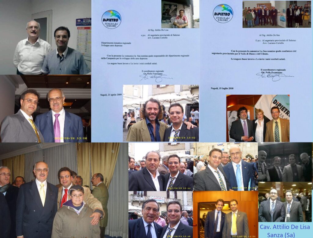 Il Cav. Attilio De Lisa, ha ricoperto all´interno del Partito I.D.V., la carica di Referente di Sanza (Sa)-Cilento-Vallo di Diano e quella di Esponente Regionale I.D.V. Campano e Provinciale Salernitano.