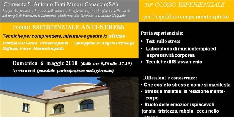 Sede del corso: Casa di Ospitalità S. Antonio Convento dei Frati Minori Capaccio Paese (SA) Prenotazioni (entro il 2 maggio) fino ad esaurimento posti.