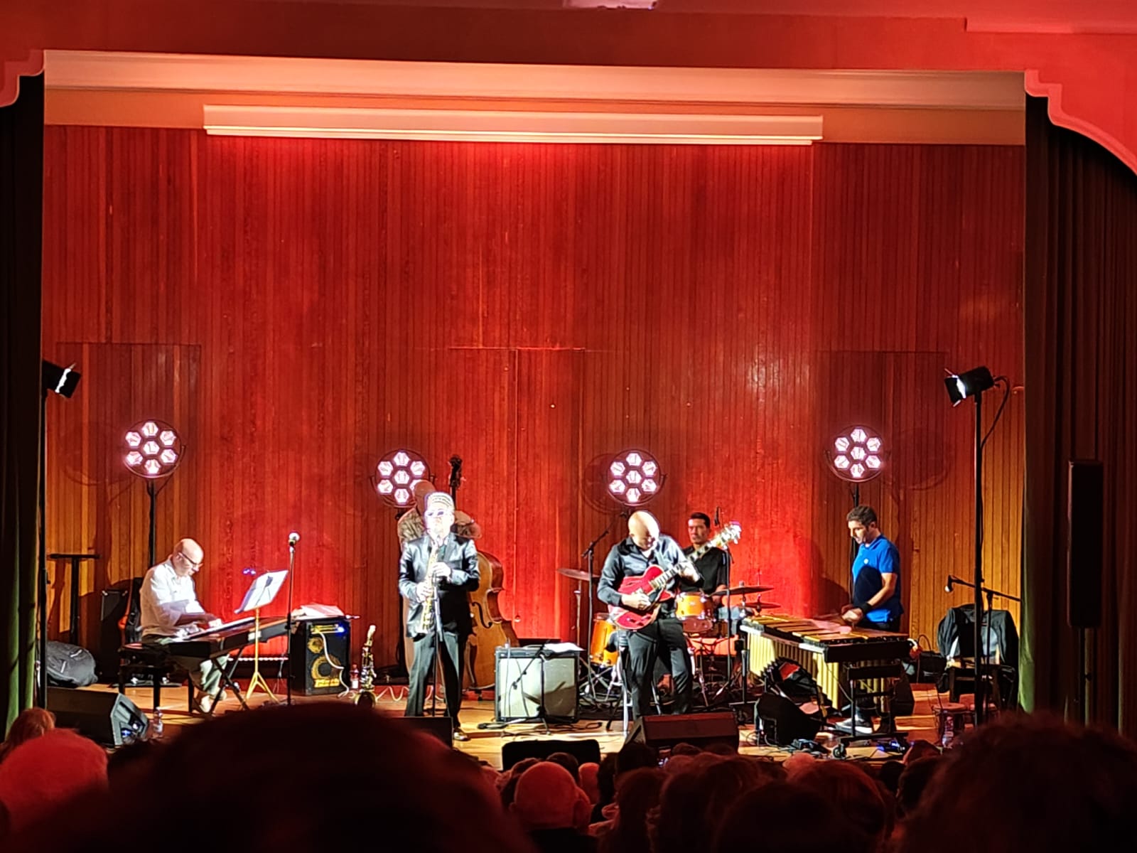 Arrivata in largo anticipo, sono riuscita ad accaparrarmi uno degli ultimi posti: in molti sono rimasti in piedi o fuori dalla sala. I sei musicisti hanno accompagnato il pubblico in un lungo ed emozionante viaggio nel repertorio battistiano. La band “6 in Jazz” ha eseguito, rivisitandoli in chiave jazz, alcuni dei grandi successi di uno dei protagonisti della canzone d’autore italiana.