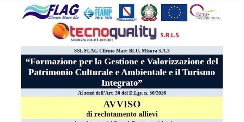 Il Comune di Castellabate, inserito nella rete di comuni del FLAG Cilento Mare Blu presieduto dall’Ing. Mauro Inverso, rientra nell’esecuzione della misura 3.A.3 “Formazione per la gestione e valorizzazione del patrimonio culturale e ambientale e il turismo integrato”. Verranno attivati due progetti formativi sui temi della gestione e valorizzazione del patrimonio culturale e ambientale e sulle nuove forme di turismo della durata di 120 ore ciascuno, con lezioni di diritto e mercato del lavoro, inglese, informatica, turismo, aspetti fiscali e normativi dell’impresa con mappature del territorio, visite aziendali e stage. Si tratta di un’opportunità per i giovani del posto che potranno così qualificarsi per lo svolgimento di nuove attività basate sui valori reali del territorio. Tutte queste attività sono rivolte ai giovani dai 18 ai 36 anni (il limite d’età per le donne si alza a 39 anni) che vogliono incrementare le competenze e le capacità di auto-impresa, nella selezione degli allievi verrà data precedenza ai pescatori e ai loro familiari. L’azione sarà attuata dall’ente di formazione “Tecnoquality” accreditato presso la Regione Campania e darà diritto all’attestato di partecipazione e ad un rimborso di € 500 per allievo. Per informazioni e per l’iscrizione ai corsi, che si terranno ad Agropoli per un massimo di 30 allievi, è possibile consultare il sito www.cilentoregeneratio.com oppure tel. 327 7522339 e-mail [email protected]