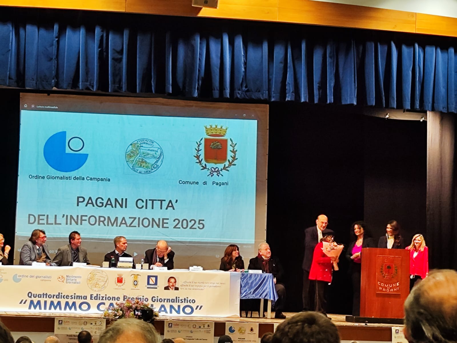 Nel corso della serata è stato presentato il resoconto delle attività della prima edizione di “Pagani città dell’informazione 2025“, progetto culturale promosso dall’Ordine dei Giornalisti della Campania, presieduto da Ottavio Lucarelli, con l’obiettivo di valorizzare i territori attraverso un’informazione di qualità, raccontando le eccellenze locali e rafforzando il legame tra giornalismo e comunità.