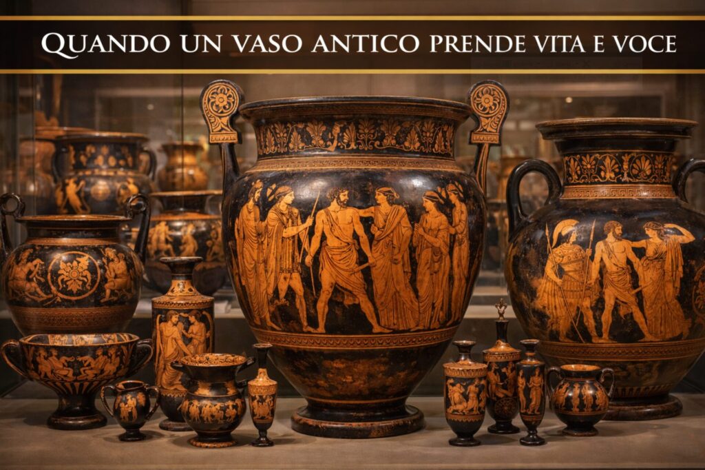 Le figure diventano parole silenziose che finalmente possono essere ascoltate. Il vaso non racconta in modo lineare come un libro moderno. Racconta per immagini, simboli e allusioni.