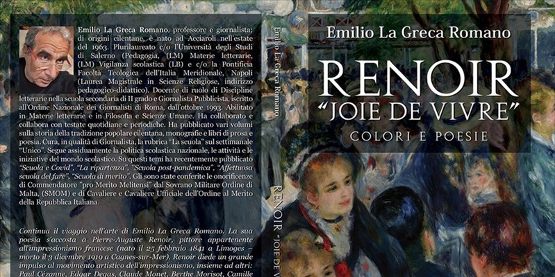 Continua il viaggio nell’arte di Emilio La Greca Romano. La sua poesia scopre Pierre-Auguste Renoir, appartenente all’impressionismo francese (nato il 25 febbraio 1841 a Limoges – morto il 3 dicembre 1919 a Cagnes-sur-Mer). Renoir scriveva: “Nel dipingere è difficile capire qual è il momento in cui l’imitazione della natura deve fermarsi. Un quadro non è un processo verbale. Quando si tratta di un paesaggio, amo quei quadri che mi fanno venir voglia di entrarci per andarvi a spasso.” L’Autore, con questa sua nuova silloge, entra nell’opera di Renoir, cammina nella vegetazione costrittiva alla mutazione luminosa, tocca i colori con le parole, narra gli accadimenti della dipintura, spesso, restando nell’atmosfera impressionista che contraddistingue, fatte salve le divagazioni, la creazione di Renoir. In questa dimensione La Greca Romano trova la sua ispirazione e innesta la sua intima narrazione. Entro volumi e spazi di Renoir, l’Autore di questa silloge, trova scaturigine con la sua originale creatività poetica. Sgorga poesia dall’arte, ma anche speciale ispirazione e sollecitazione nell’azione d’altra creazione artistica. Le prime opere di Renoir sono scene di vita reale assunte nell’azione, colme di rilucente cromia. Nel corso della sua vita il pittore, verso il 1885, evase i dettati dell’impressionismo e assunse una tecnica più formale e rigorosa specialmente nei ritratti femminili. Tracce delle mutazioni si riscontrano nella lettura della raccolta di La Greca Romano. Renoir viene additato il pittore della “joie de vivre”. Come tutti gli impressionisti predilige dipingere “en plein air”, “all’aperto, all’aria aperta”. Dipinse per tutta la sua vita, malgrado il severo impedimento a causa dell’artrite reumatoide agli arti che lo colpì intorno ai 50 anni. Pare sia morto coi pennelli in mano, fra le sue dita rattrappite. Renoir da giovane manifestò interesse per la pittura; iniziò, infatti, come apprendista di pittura di porcellana. Nei ritagli di tempo studiò disegno. Diede un grande impulso al movimento artistico dell’impressionismo, insieme ad altri: Paul Cézanne, Edgar Degas, Claude Monet, Berthe Morisot, Camille Pissarro. Artisti che crearono una nuova estetica che si contrapponeva all’arte accademica, col fine di mostrare la fugacità della luce e i suoi effetti su colori e forme. “Una mattina, scriveva Renoir, siccome uno di noi era senza nero, si servì del blu: era nato l’impressionismo.” Renoir solamente negli ultimi anni riuscì a diventare uno degli artisti più apprezzati del suo tempo. “Renoir, joie de vivre” è un omaggio al grande maestro, ma anche una singolare proposta di sollecitudine all’interesse e all’amor per l’arte, a ciò che è cosa amabile, allegra e bella, capace di trasmettere buon umore, proprio come scriveva Pierre-Auguste Renoir: “Per me, un dipinto deve essere una cosa amabile, allegra e bella, sì, bella. Ci sono già abbastanza cose noiose nella vita senza che ci si metta a fabbricarne altre. So bene che è difficile far ammettere che un dipinto possa appartenere alla grandissima pittura pur rimanendo allegro. La gente che ride non viene mai presa sul serio. La pubblicazione, a breve, sarà distribuita anche nei diversi store libri online. Fra questi gli store Mondadori, Feltrinelli, Rizzoli, Libreria universitaria, ibs, uni libro ecc.